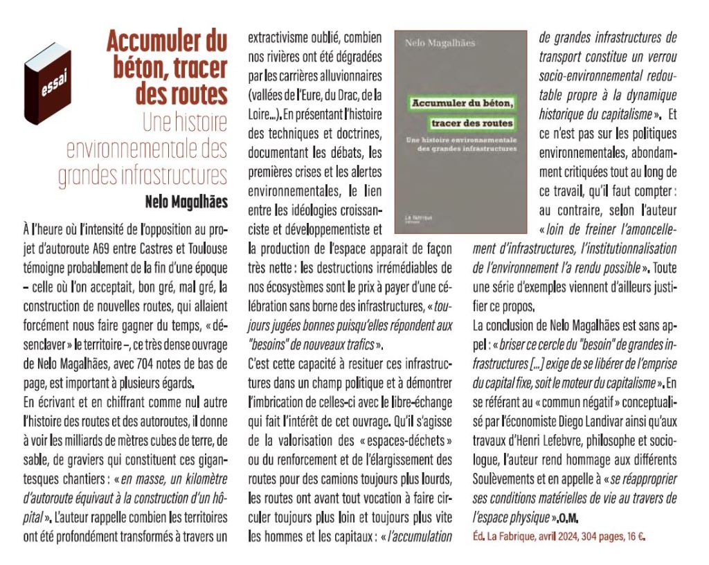 Note de lecture – Accumuler du béton, tracer des routes. Nelo Magolhães